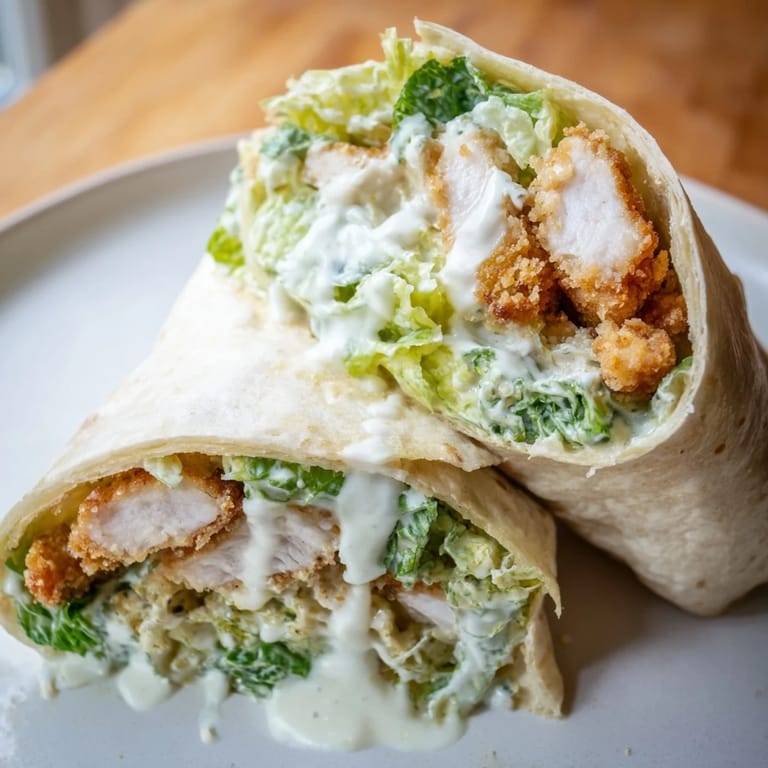Pin it My neighbor knocked on the door one Saturday holding a head of romaine and a bottle of Caesar dressing, asking if I had any chicken. We threw together these wraps in her kitchen while her kids watched cartoons, and by the time we finished frying the last batch, the smell had drawn everyone to the table. It was messy, loud, and exactly the kind of spontaneous cooking that reminds me why I love feeding people. That crispy chicken, tucked into soft tortillas with crunchy lettuce and sharp Parmesan, turned a lazy afternoon into something memorable. Ive been making them ever since, whenever I need something satisfying without the fuss.