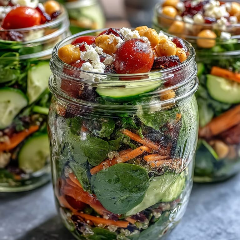 The first time I packed mason jar salads for friends heading out on a road trip, we scattered jars across a picnic table and debated who had built the best flavor tower. Laughter followed as someone discovered they'd layered dressing on top instead—lesson learned. It became a tradition: whoever gets soggy greens buys next week's veggies.