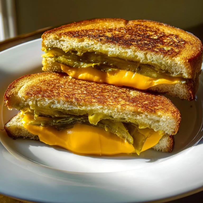 Sharp cheddar and tangy pickles are a naturally complementary pair—the bold, slightly salty cheese amplifies the brightness of the dill, creating this beautiful back-and-forth on your palate. When you melt the cheese and toast it until the edges brown, you add another layer of complexity that transforms what could be a simple snack into something genuinely crave-worthy. I've found that the key is not overthinking it; the three main elements—cheese, pickles, and heat—do all the heavy lifting, which is why this works so well despite its unusual simplicity.