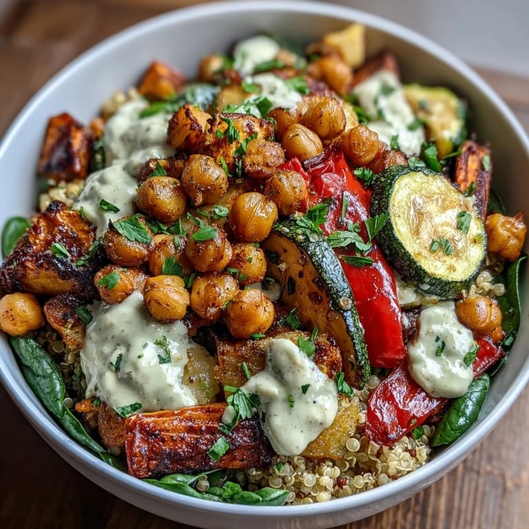 Pin it One Tuesday afternoon, I stood in my kitchen watching chickpeas tumble in a hot pan, and something clicked, the smell of cumin and smoked paprika filling the air while golden vegetables caramelized beside them. That moment sparked a realization, somehow a simple bowl of roasted vegetables and grains could feel as satisfying as any elaborate meal, maybe more so because it tasted like I was actually taking care of myself. Since then, this power bowl has become my go-to when I want something nourishing without the fuss, the kind of meal where every component shines on its own but tastes even better together.