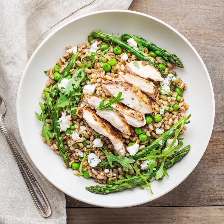 Pin it The first time I made this salad was during that awkward transition between spring and winter when you are tired of heavy stews but it is still too chilly for cold meals. I had bought farro on impulse and chicken was defrosting when I spotted the first decent asparagus of the season at the market. Something about the nutty grain and crisp vegetables together felt like exactly what my kitchen was missing.